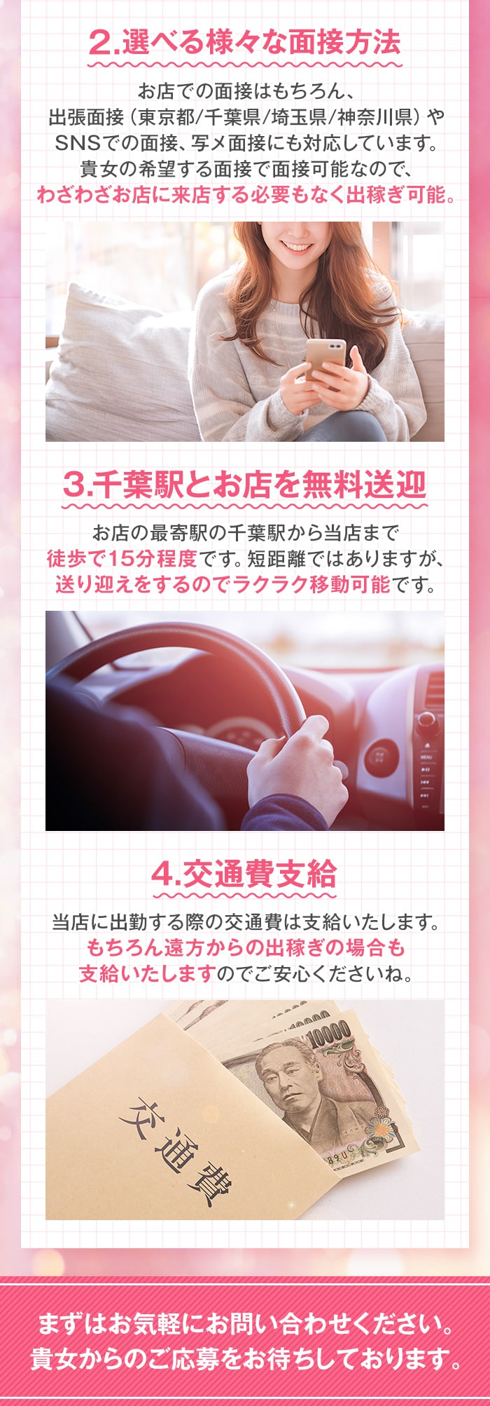 ③LINE・写メ面接:事前説明、合否の判断もして、安心してお越しいただいています。
